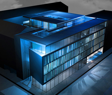 durch Ausbildung einer 'monolithischen' Ecke und dem transparenten