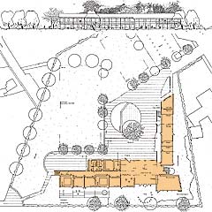 auf zwei Seiten, durch die als Erweiterung projektierte Sporthalle entsteht die