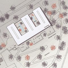 angeordnet und ist über zwei Geschosse orientiert. Am Fuße des Pflegeheims befindet